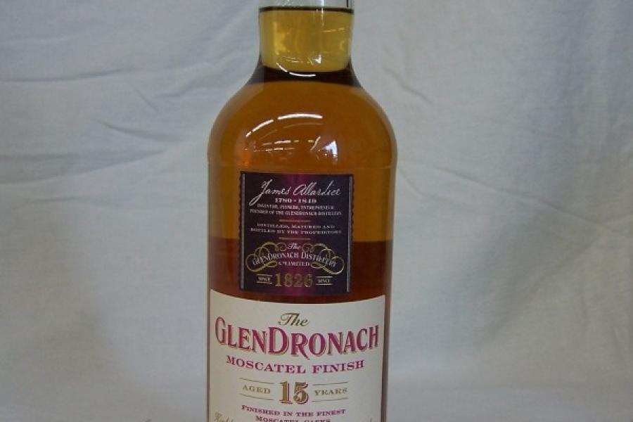 Glendronach propose cette version de 15 ans affinée en fût de Moscatel. Une variation aromatique interressante qui oscille entre fruits exotiques et notes de pêches pochées.