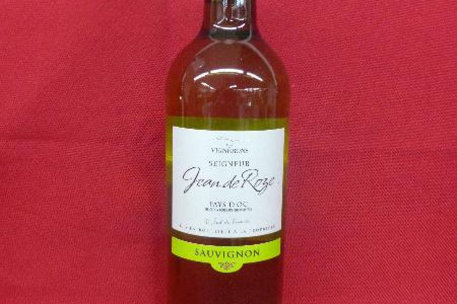 Issu du cépage Sauvignon, le "Seigneur Jean de Roze" présente une belle robe jaune clair aux reflets vert, un nez puissant minéral, une bouche longue, vive et d'un très bel équilibre. Servi entre 6° et 9°, vous l'apprécierez pleinement à l'apéritif, sur des poissons grillés ou sur des coquillages.